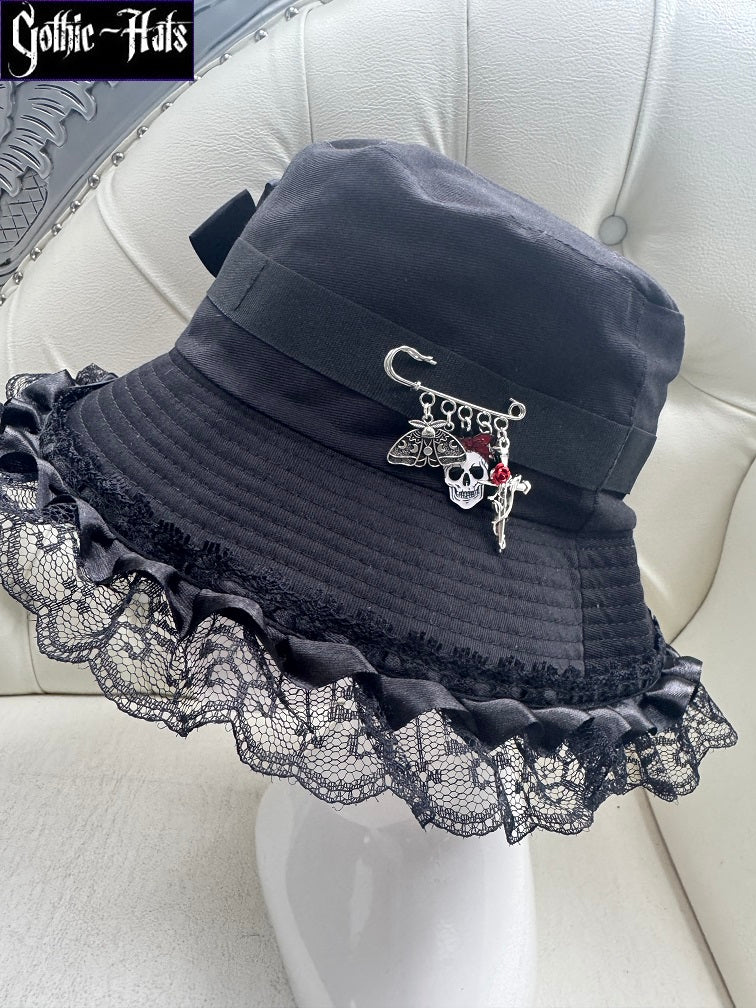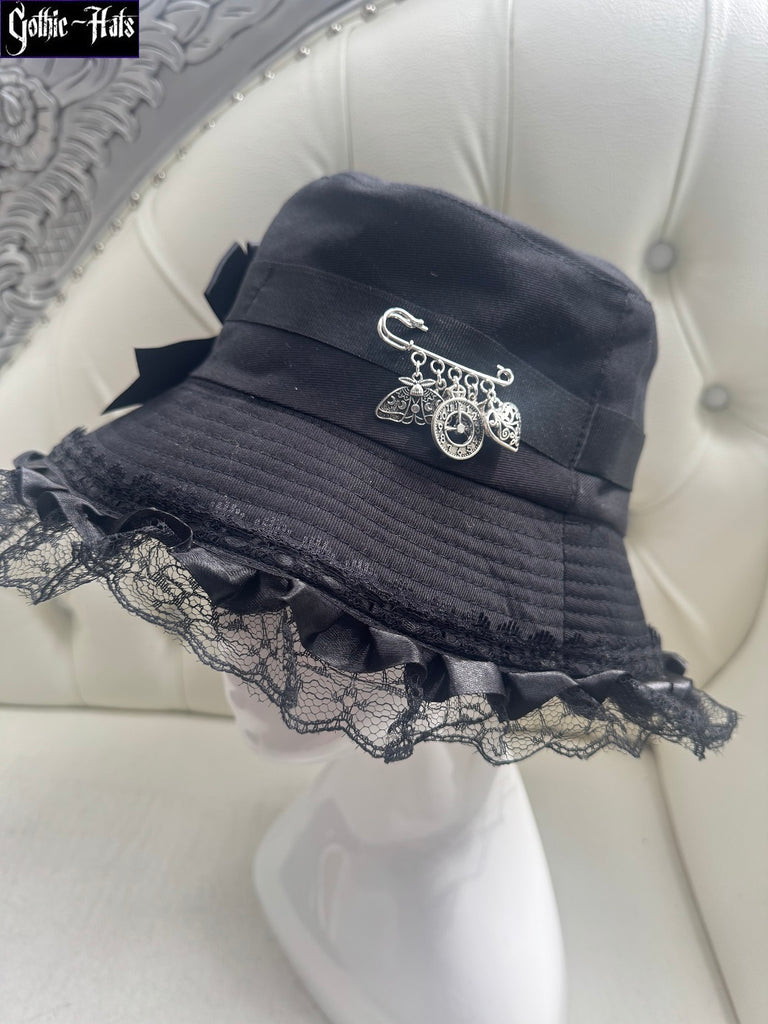 Gothic Bucket Hat with charm pin. Size approximately 58cm.